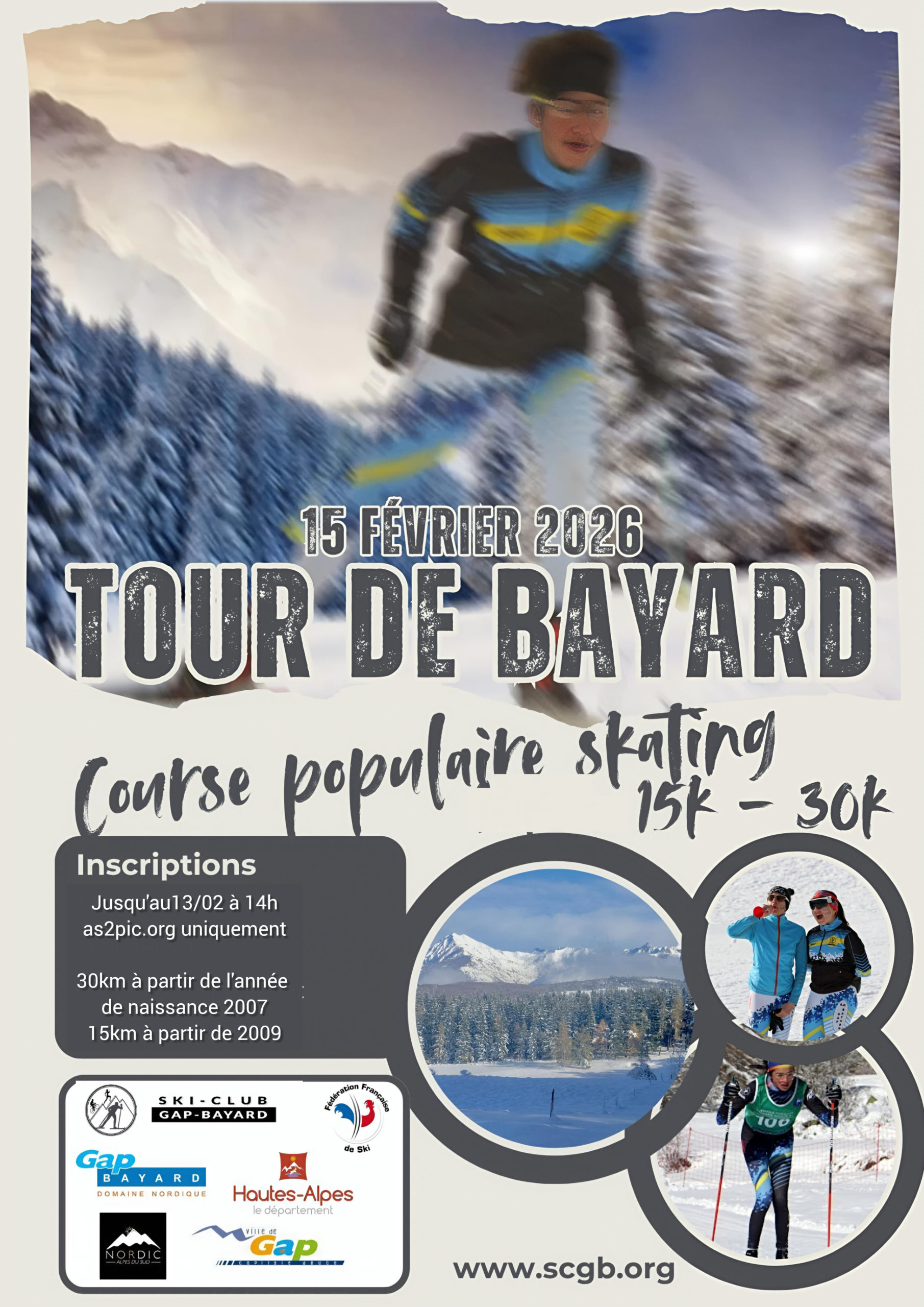 Le Ski Club GAP BAYARD organise une course populaire de ski de fond intitulée « Le TOUR DE BAYARD » sur le plateau de Bayard le Dimanche 15 Février 2026ouverte aux licenciés FFS et aux non licenciés